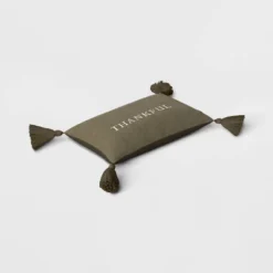 Thankful Embroidered Herringbone Lumbar Throw Pillow Dark Green – Threshold™