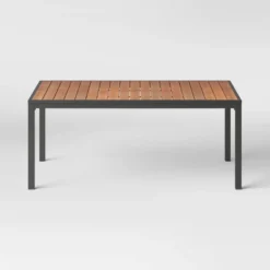 Bryant 6 Person Faux Wood Rectangle Patio Dining Table – Gray/Natural Wood – Threshold™