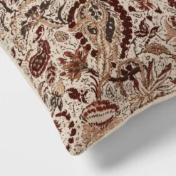 Complete the look of your favorite seating spot with this Traditional Paisley Square Decorative Pillow from Threshold™. This decorative throw pillow is adorned with a classic pattern of brown paisleys and florals sprawled on a light beige background for a tasteful aesthetic. It is made of 100% cotton with comfy filling to provide plenty of cushioned comfort while you sit and relax. You can place it on your couch, armchair or bed for versatile styling.