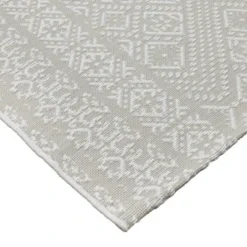 Spruce up your al fresco setup in chic style with the Double-Diamond Outdoor Rug from Threshold™. This outdoor rug is great for use on your porch or patio, and it combines an elegant look with comfortable cushioning underfoot and easy care (just rinse with a hose). The rectangular outdoor rug is decked out in a stylized double-diamond pattern in grayish silver and white that will easily coordinate with your existing decor. Plus, the geo-pattern rug has a spray latex backing to help keep it in place wherever you choose to arrange it.