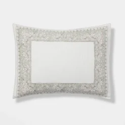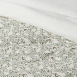 The Richland Floral Comforter Set from Threshold™ will give your bedroom a fresh, blooming update. This eight-piece bedding set includes a soft-filled comforter, two Euro shams, two pillow shams, two decorative pillows and a bedskirt to transform your bedroom into a restful retreat in no time. The comforter features a lovely black and white floral pattern over a textured light green base to brighten the top of your bed with a garden-inspired look. The two Euro shams in white are trimmed with light green edging, the square decorative pillow in green has fringed edges, while the two shams and a rectangular decorative pillow in white have a bordered floral design for a designer look. The bedskirt with 15-inch drop length provides the perfect finishing touch with its crisp white color. Machine-washable for easy care, this percale bedding set will make your bedroom a stunning setup by day and a cozy sanctuary at night.