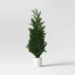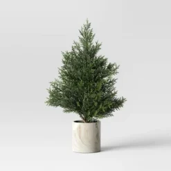 Decorate your home or office space with this Artificial Plant Shimmer Pine Tree from Threshold™. This artificial pine tree is decorated with shimmer detailing for a lovely look, and it comes potted inside a ceramic container for instant display. The artificial construction makes it maintenance free, and you can add colorful ornaments and a star topper to dress up the tree.
