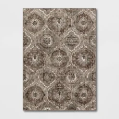 Add beauty and warmth to your flooring with this Bailey Companion Tile Print Accent Rug from Threshold™. This rectangular accent rug provides welcoming style to your indoor space. It showcases a traditional tile pattern in neutral and tan tones for a charming classical look. The latex backing helps prevent the rug from shifting and moving. Cut to a medium pile profile, it easily fits under furniture and can be spot cleaned for easy care.