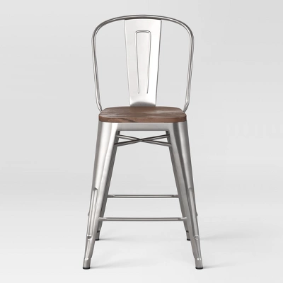 Update your kitchen or bar area with the Carlisle 24″ Counter Stool from Threshold. This item includes modern metal counter stools that are tough and sturdy enough to handle daily wear and tear while remaining comfortable, functional and stylish. The combination of the metal frame and wood seat brings industrial-chic style to any living space.