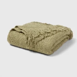 Layer your indoor seating with this Fringed Boucle Throw Blanket from Threshold™. This solid-color throw blanket makes a must-have layering accessory for the chillier seasons. Made from woven boucle material, this midweight throw blanket is both warm and comfortable to use. The matching fringe accents add casual texture and decorative flair. Just toss it on your bed or drape it over your couch to offer extra warmth and style.