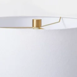 Brighten up your space in modern style with this Large Ceramic Jar Table Lamp from Threshold™ designed with Studio McGee. This table lamp includes a large pot-like ceramic base with two handles and a drum-shape shade. The gray ceramic base comes with a striped pattern that complements the white shade for an appealing look. Designed with a dimmable light setting, this ceramic table lamp helps you adjust the light according to your need — just place it in your reading nook or living room to create a beautiful setting.