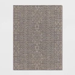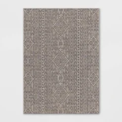 Spruce up your porch or patio with this Outlined Geo Pattern Outdoor Rug from Threshold™. This woven rug features a dark-outlined geometrical pattern on a neutral-color background, making it easy to blend with any decor style. It boasts fade- and UV-resistant fabric with quick-drying properties for convenient outdoor use, and the flat pile height makes the rug easy to clean whenever it needs a quick refresh.
