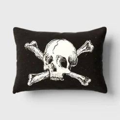 Oversize Skull And Crossbones Woven Cotton Lumbar Halloween Throw Pillow Black – Threshold™
