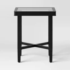 Create a cozy conversation area in your outdoor space with this Searsburg 3-Piece Aluminum Patio Chat Set in Black from Threshold™. Made from black weather-resistant, powder-coated aluminum, this set is composed of two club chairs and a square, glass-topped accent table. The club chairs are padded with 100% polyester cushioned seats and backrests that are covered in white fabric for contrast and comfort.