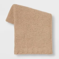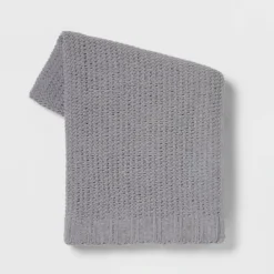 Welcome cozy ambiance to your space with this Solid Chenille-Knit Throw Blanket from Threshold™. Crafted from a chenille fabric, this knit throw blanket feels soft against your skin and envelops you in cozy comfort as you read a book or watch a movie on the couch. In a solid hue, this chenille throw blanket showcases a classic cable-knit design that lends texture and warmth to your space. Drape it over your favorite armchair or toss it on the back of your sofa to add texture the your decor while providing a cozy cover for yourself or your guests.