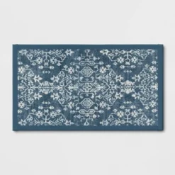 Welcome weathered elegance and timeless beauty into your home with the Vintage Print Rug from Threshold™. This rug provides an effortless way to enhance the look of your open floors while adding comfort and character to any room. This woven rug is adorned with geometrical medallion motifs made with traditional designs in white over a blue background in distressed finish for vintage charm. It’s framed by a stitched border in solid blue for a neat and sophisticated look. Easy to clean, this flat-pile rug is ideal for use in a variety of areas within your home, and it has a latex backing to help keep the rug in place.