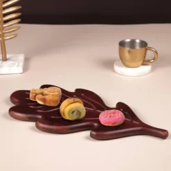 Wooden Round Leaf Shape Serving Board With Handle Dark Brown – Threshold™